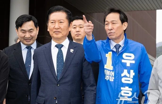 정청래, '험지' 강원 찾아 "우상호 가는 길 뒷받침"…禹 "성과로 보답"(종합)