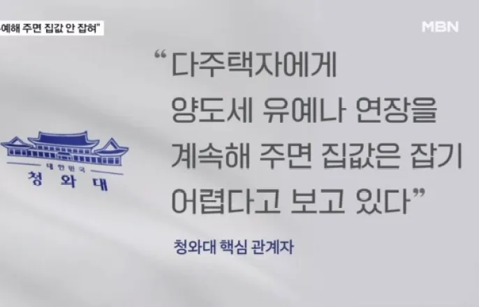 청와대 "양도세 유예해 주면 집값 안 잡혀"…대통령 발언 배경 주목