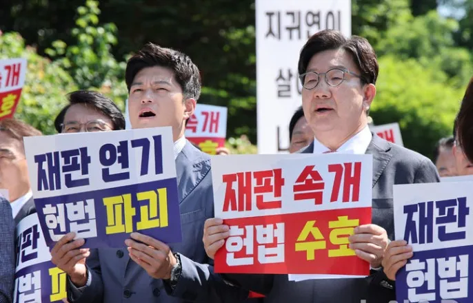 국힘, '李 재판 중단' 사법부에 "이재명 권력에 무릎 꿇은 것…재판 계속해야"(종합)