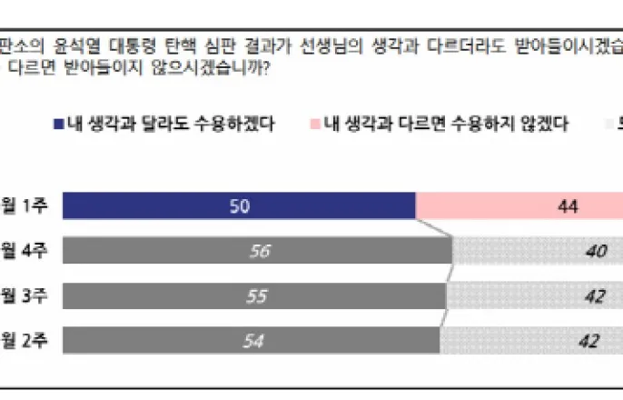 '尹 탄핵 결과' 내 생각과 다르면 불수용 44%…전주 대비 4%p↑