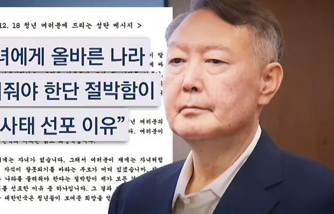 "청년들 우리 자녀 같아 계엄" 윤석열 또 옥중편지