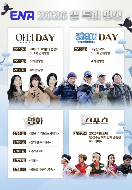 ENA, 설 연휴 특집…이나영 '아너'·유재석 '풍향고' 몰아보기 온다