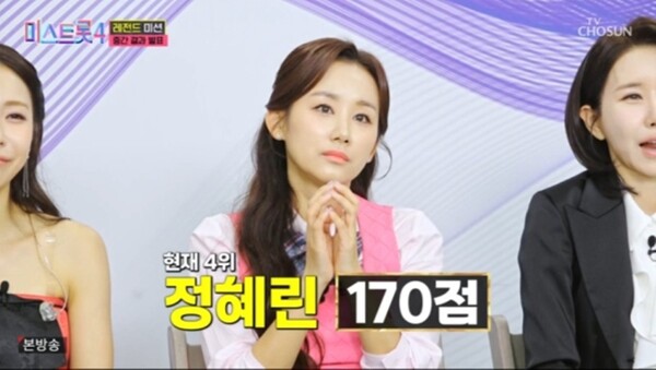 '미스트롯4' 정혜린, "죽기 살기로"…장혜리 꺾고 1라운드 4위 등극