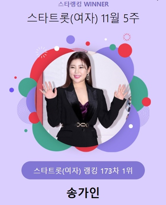 '뷰티 MC'까지 섭렵한..송가인, 스타랭킹 女트롯 173주 연속 1위