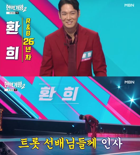 첫방 "동명이인 아니었다" 환희, 트롯계 도전장…90도 인사하며 '긴장' ('현역가왕2')