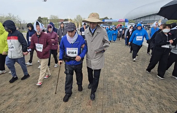 [르포] “뚜벅뚜벅 걸으니 개운”… 장애인 돕는 ‘웨어러블 로봇’ 걷기 행사 가보니