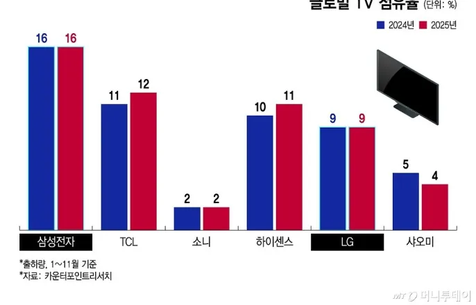 한국 TV 멈추니 중국 TV 질주..삼성 1위 자리도 위협