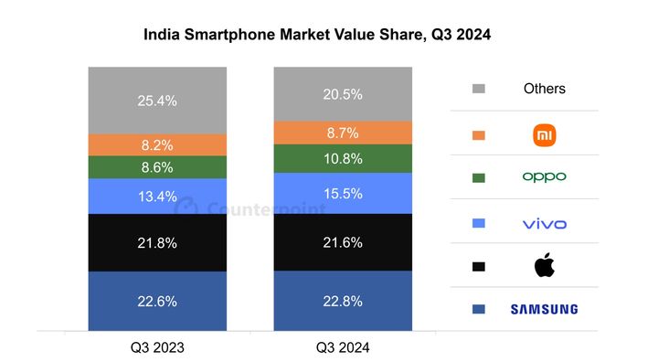 삼성전자, 인도 스마트폰 시장 매출 점유율 1위