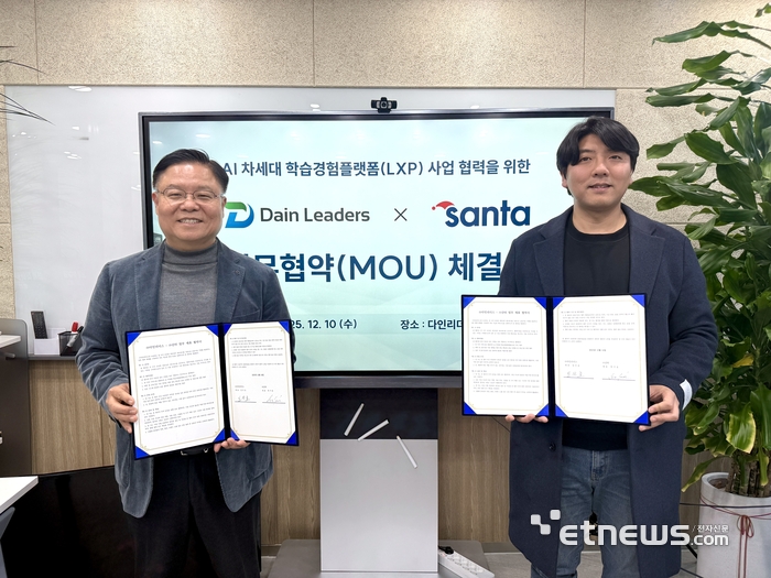 다인리더스-산타, AI 차세대 학습경험플랫폼(LXP) 구축 위한 MOU 체결