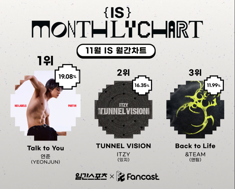 투바투 연준 ‘톡 투 유’, 11월 ‘IS 월간 차트’ 종합 1위