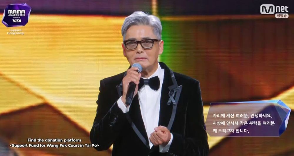 주윤발, 홍콩 참사 애도하며 울컥 "위로의 말씀 전하고파"[2025 MAMA]