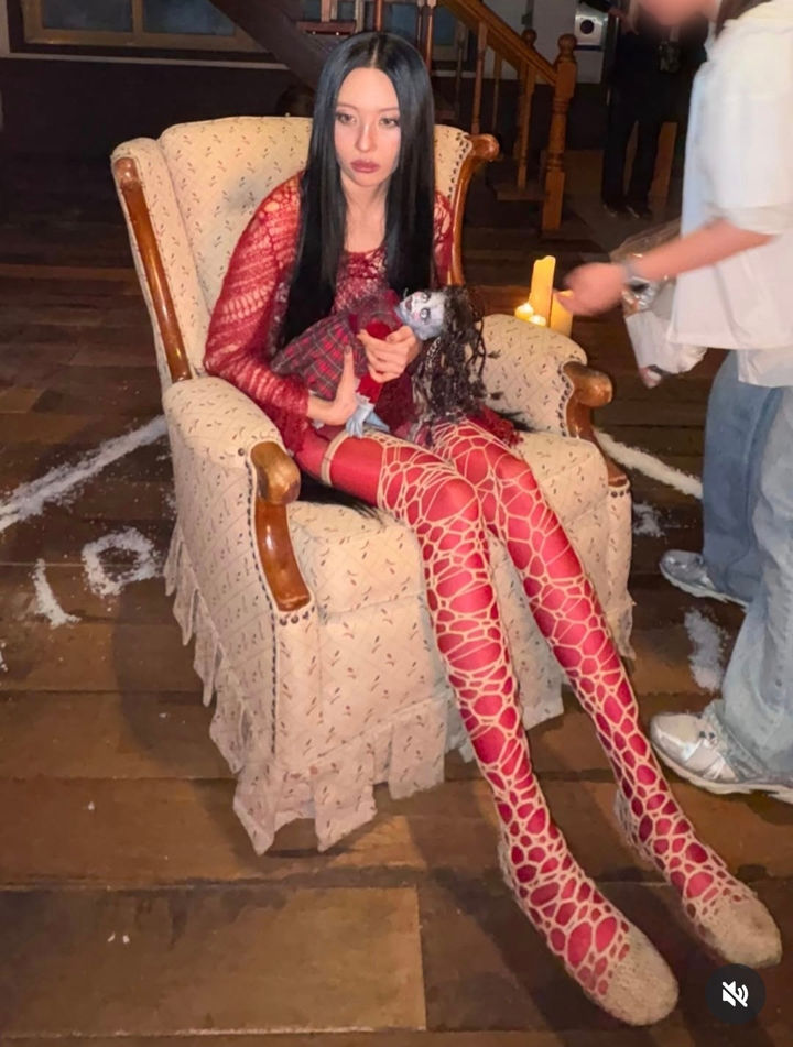 선미, 빨간색 전신 타이즈 아찔해…"귀신 친구들이랑"