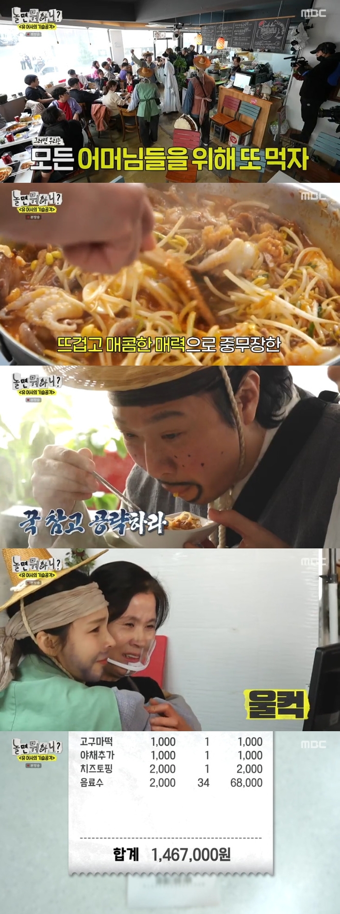 [종합] 유재석 ‘무한도전’ 기습공격 재연… 떡볶이집 146만원→고깃집 171만원 매출 달성 “암행어사 출두요!” (‘놀뭐’)