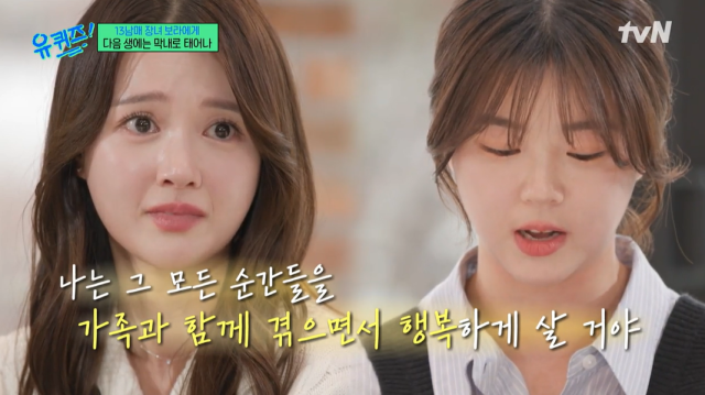 "다음생엔 막내로 태어나" 남보라, 동생 편지에 폭풍 눈물 [유퀴즈]