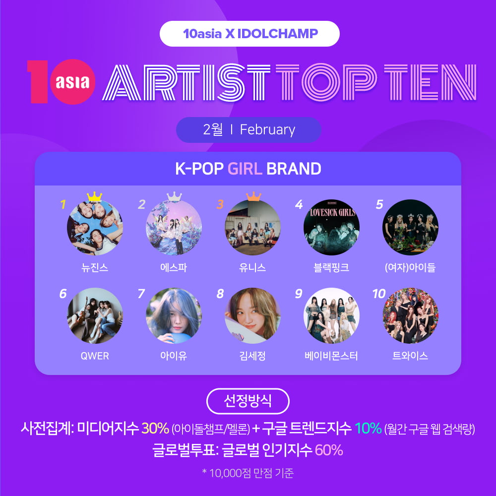 뉴진스·에스파·유니스, 2월 '아티스트탑텐 K-팝 걸 브랜드' 선정