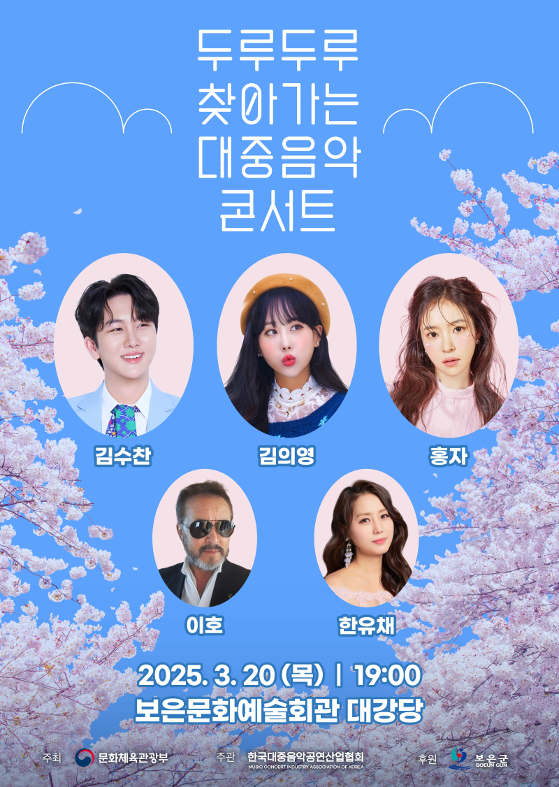 홍자·김수찬 ·김의영, ‘두루두루 찾아가는 대중음악 콘서트’ 보은군 공연 출연