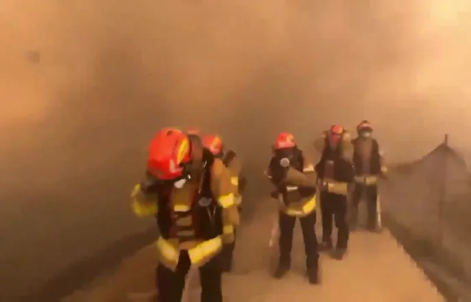 불씨에 포위된 진화대원들...돌풍이 불자 순식간에 바뀐 '불의 크기' [Y녹취록]