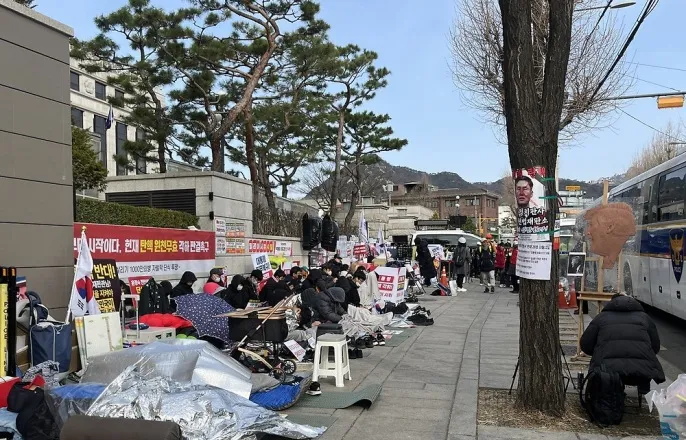 경찰 통제에 "관등성명 대"…'尹 선고' 전 주말 헌재 앞 철야 농성