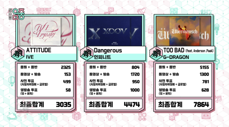 지드래곤 ‘투 배드’, 인피니트·아이브 제치고 ‘음악중심’ 1위