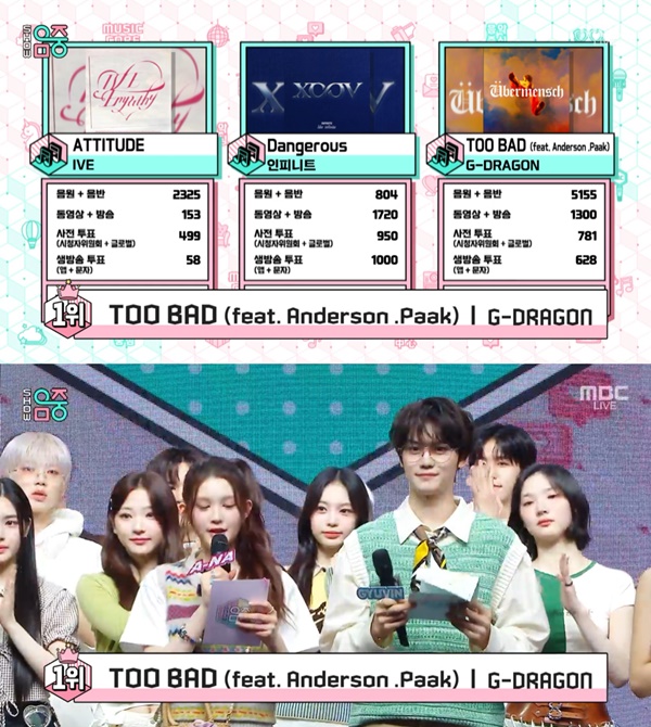 지드래곤 ‘투 배드’, 인피니트·아이브 제치고 ‘음악중심’ 1위