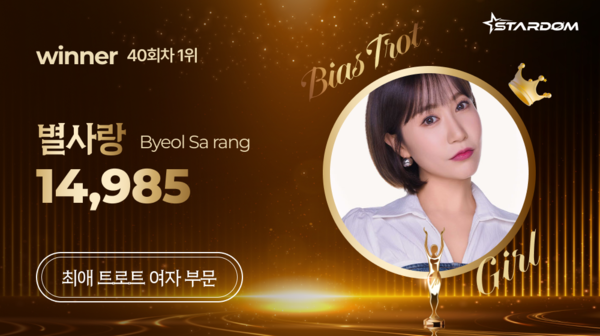 별사랑, 스타덤 '최애 트롯스타' 3주연속 1위…김의영 2위