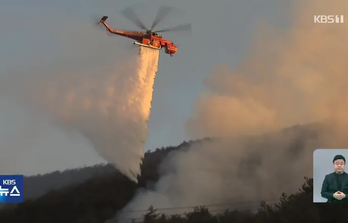 정선 산불 14시간 넘게 계속…헬기 투입