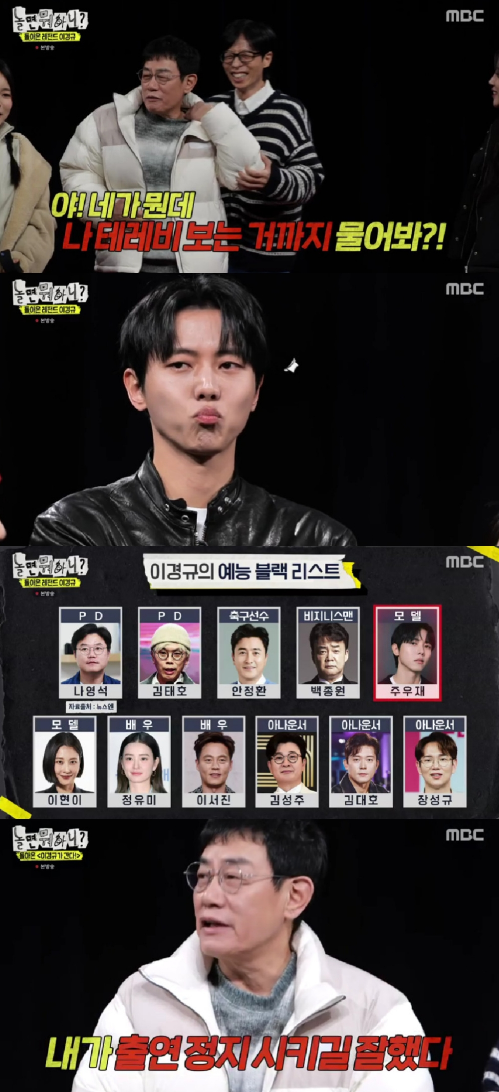 '놀뭐' 이경규, '예능 블랙리스트' 주우재에 언짢 "넌 출연 정지"[별별TV]