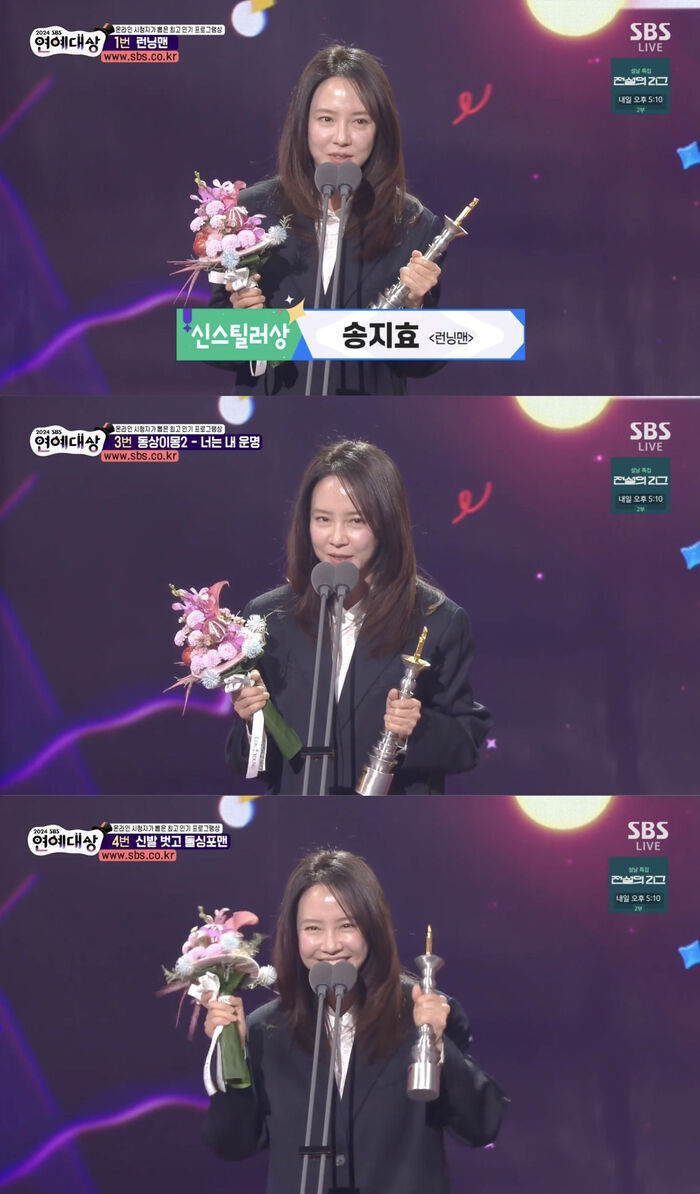 'SBS연예대상' 송지효, "내년에도 최고의 런닝맨 멤버 되도록 노력할 것"…신스틸러상 수상