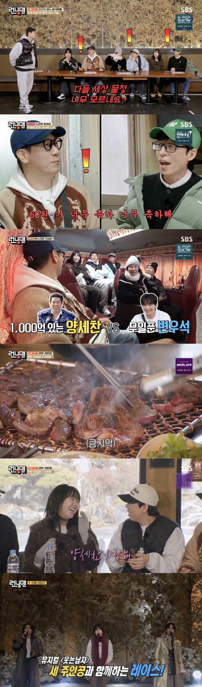 [스브스夜] '런닝맨' 양세찬의 '세레나데'에 정색하던 지예은, 한우 앞에 두고 "양세찬 사랑해"