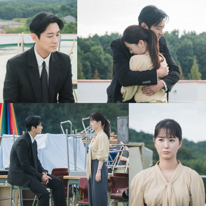 주지훈♥정유미, '애틋' 눈맞춤→'와락' 포옹..위로 스킨십 ('사외다')
