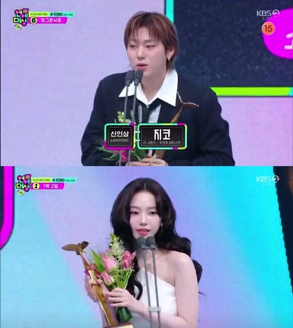 지코·카리나, 신인상 공동 수상…"본업·예능 모두 열심히"[KBS 연예대상]