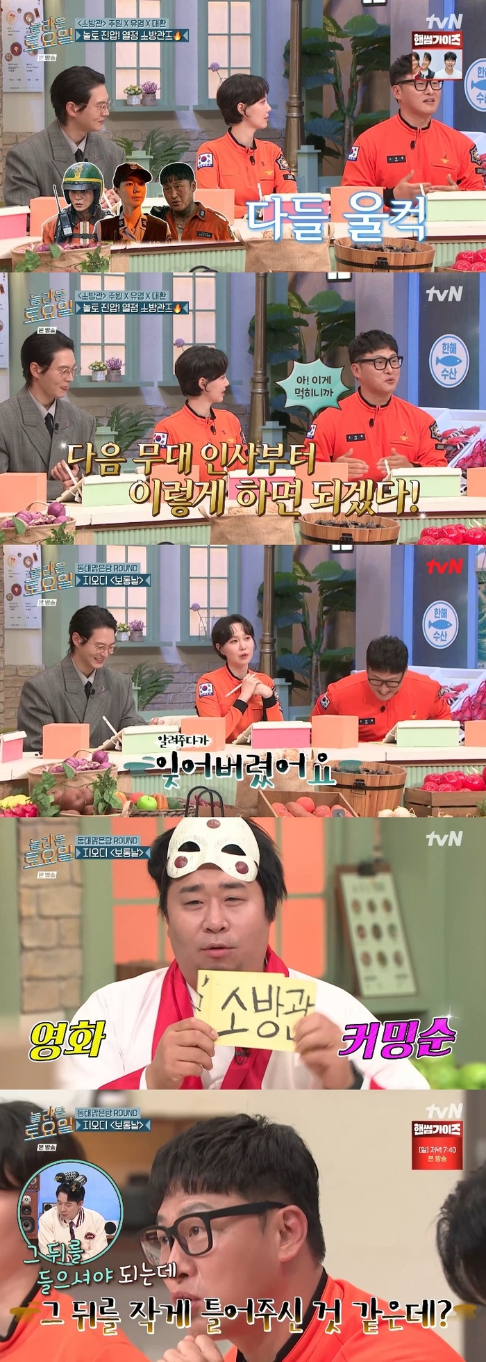 [종합] ‘소방관’ 주원X이유영X오대환 출격 “지금 뭐하는 거야?” 당황 → 동태맑은탕X무침족발 먹방(‘놀토’)