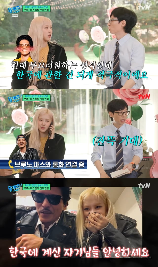뽀뽀까지 했는데…로제, 브루노 마스와 영상통화 실패에 "실망이야" 폭소 ('유퀴즈')