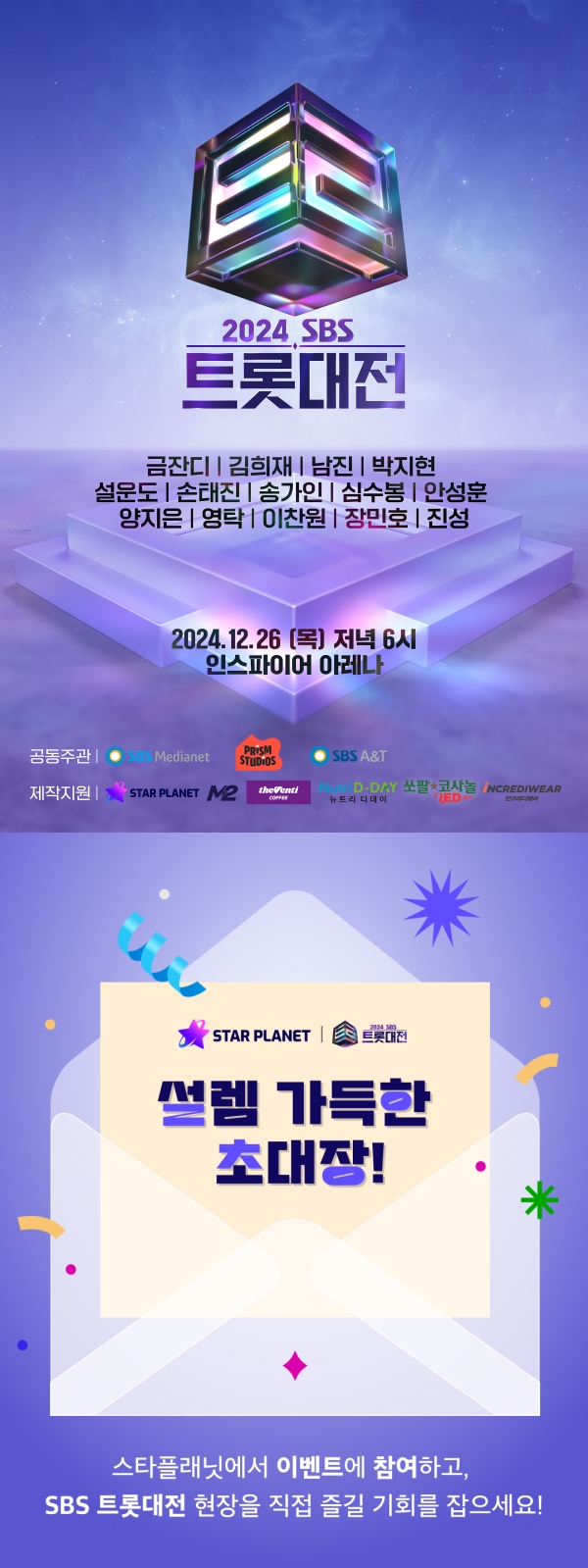스타플래닛, 이찬원-영탁-김희재 출연 '2024 SBS 트롯대전' 티켓 쏜다