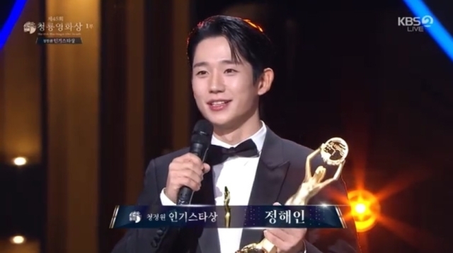 정해인, 인기스타상 수상 "입에 귀에 걸려…힘써준 팬들 감사" [청룡영화상]