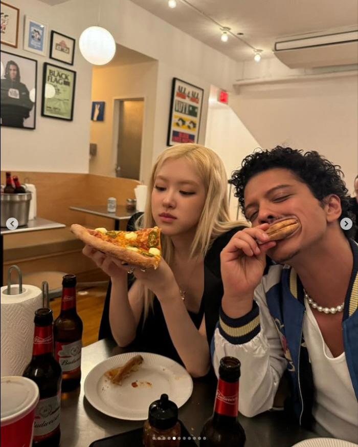 로제X브루노 마스, '사전녹화' 논란 속 즐거운 피자 파티 "나의 K팝 킹"