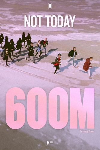 BTS '낫 투데이' 뮤직비디오 유튜브 6억뷰 돌파…팀 통산 14번째(종합)