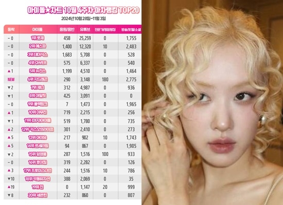 아파트 신드롬...로제, 아이돌차트 10월4주차 아차랭킹 1위