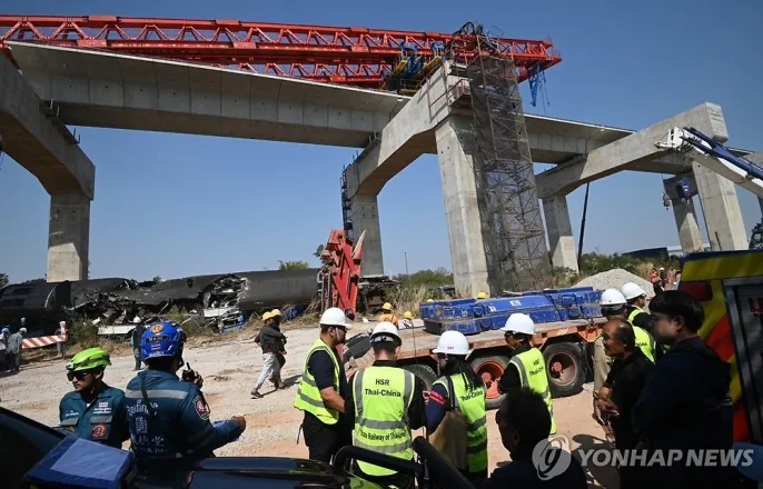 태국 고속철 공사장 크레인 무너져 열차 덮쳐…최소 32명 사망(종합2보)