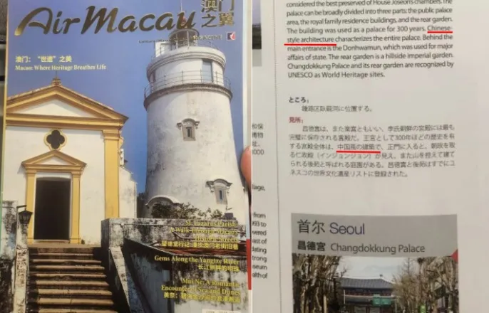 "창덕궁은 중국식 건물"…황당한 항공사 안내 책자[이런일이]