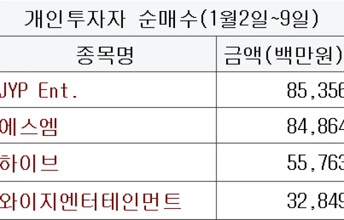 엔터주 가득 담은 개인…한한령 완화에 2000억 베팅