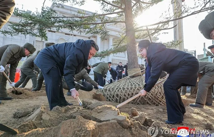 김정은, 주애와 직접 삽 들고 파병기념관 식수…지게차도 운전(종합)