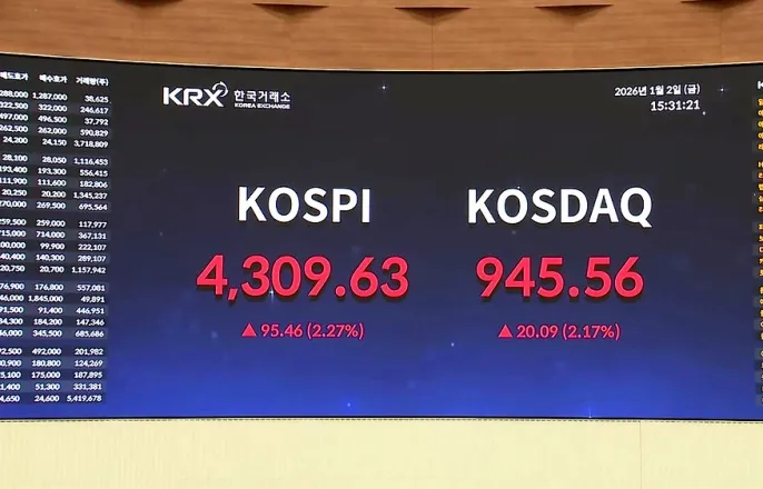 새해 첫날 코스피 2.3%↑…4,300선 넘어 '전인미답' 신기록(종합)