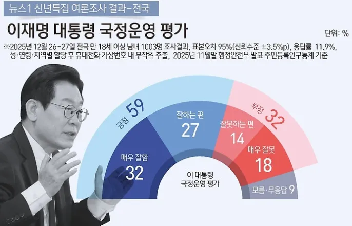 TK서도 "李대통령 잘한다" 전국 지지율 59%…국정 성과 1위 "외교·안보"