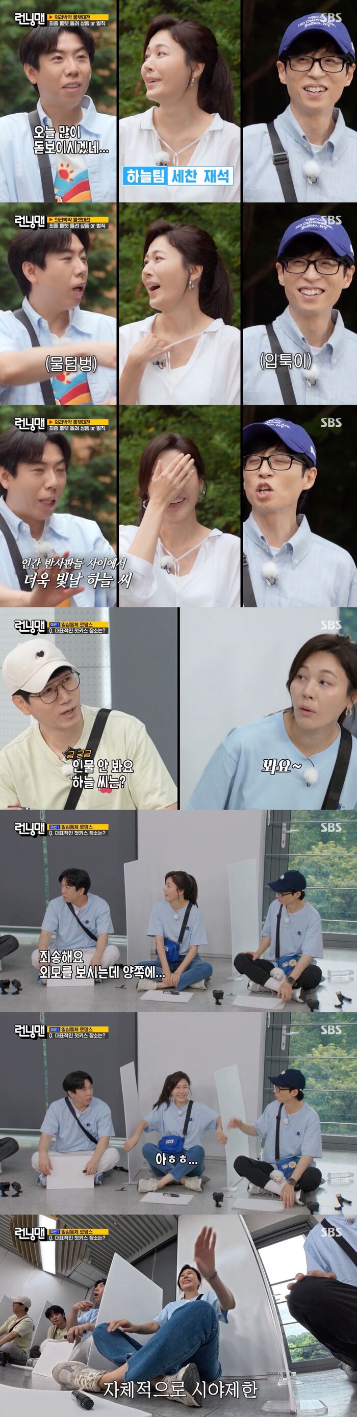 '런닝맨' 김하늘, '인간 반사판' 유재석-양세찬 얼굴 보더니 가림판 당겨 '자체 시야 제한'