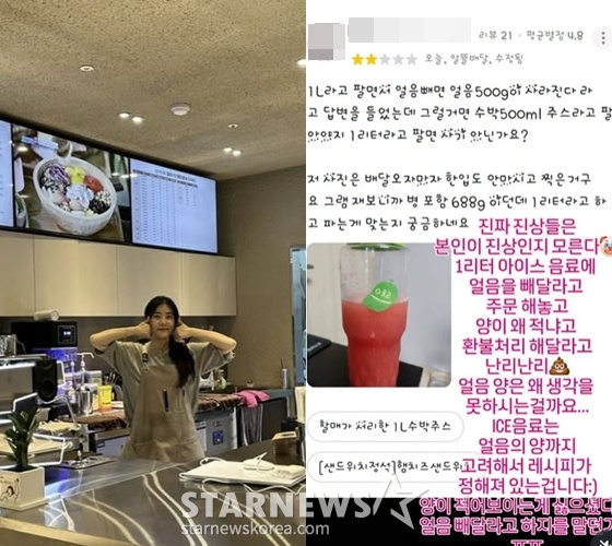 얼음 빼달라 해서 빼줬더니 '별점 테러'.."진상, 상식 없어" 손님 저격한 레인보우 노을 [스타이슈]
