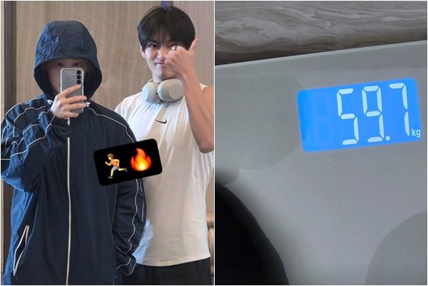 BTS 지민, 몸무게 59.7kg 인증…뷔와 운동 셀카 공개