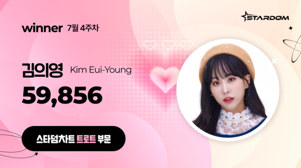김의영, '스타덤 차트' 트로트 부문 3주연속 1위…황영웅 2위