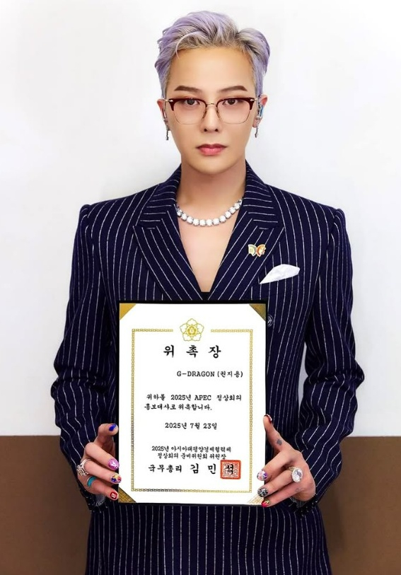 지드래곤, 'APEC 정상회의' 홍보대사 위촉장 받았다.."수신완료 감사하다"[스타이슈]