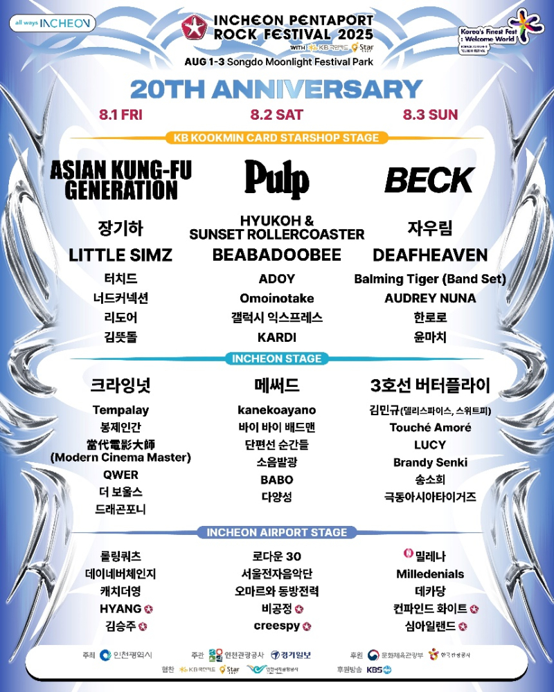 펄프부터 자우림까지…2025 인천펜타포트 록 페스티벌 최종 라인업 공개